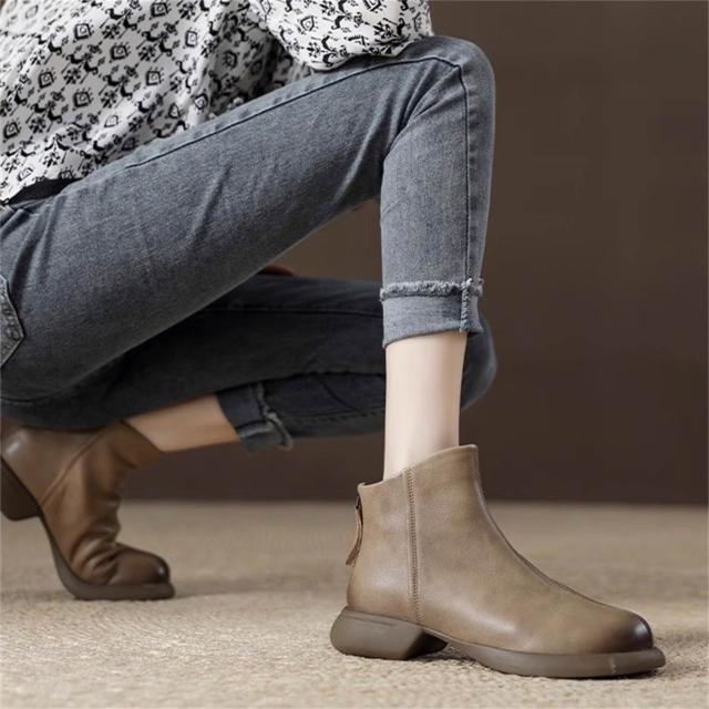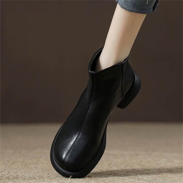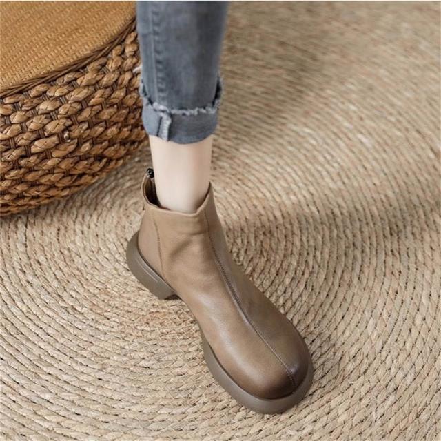 K&J 閃亮服飾 真皮軟牛皮切爾西短靴|復古英倫風顯瘦百搭靴 顯瘦短靴 修飾腿型靴 韓系短靴 質感靴子 秋冬必備短靴