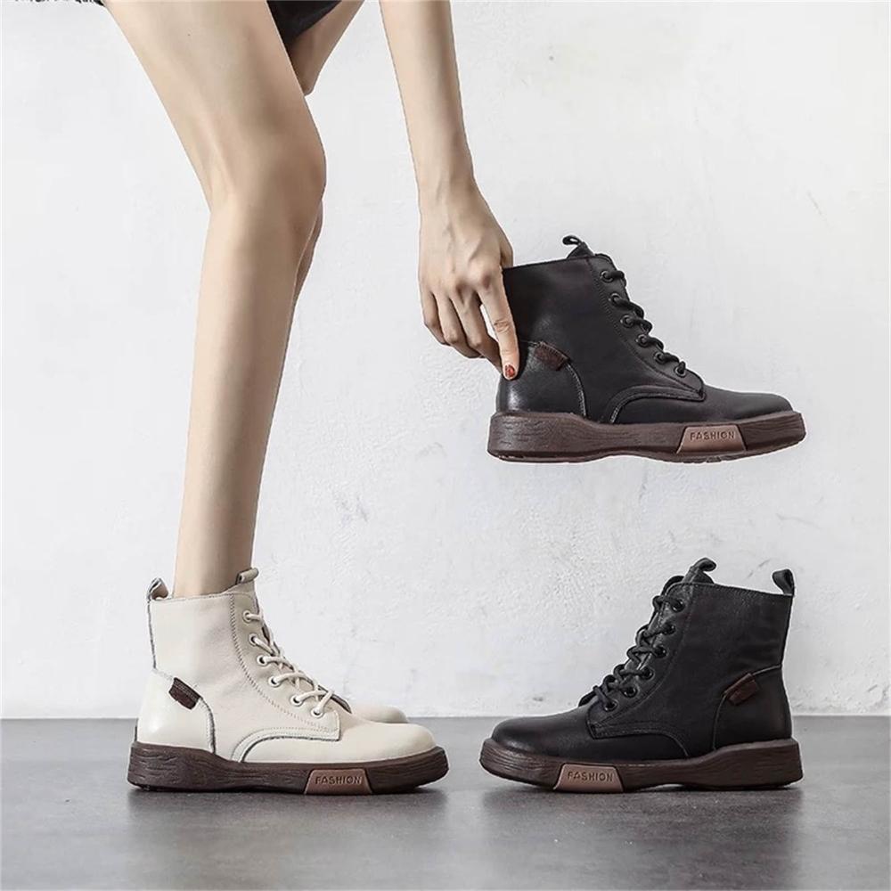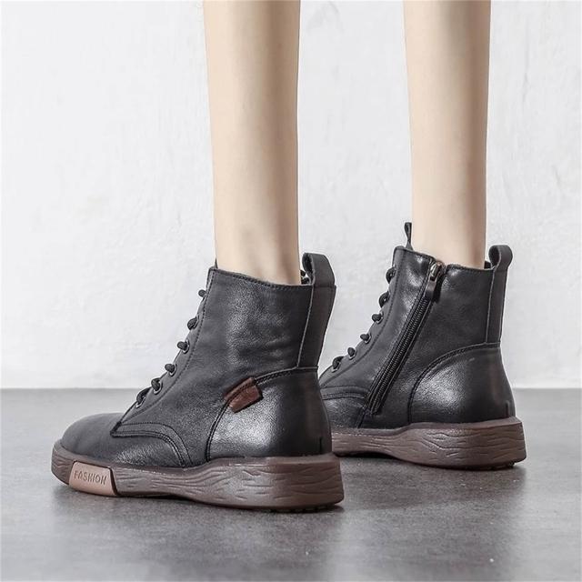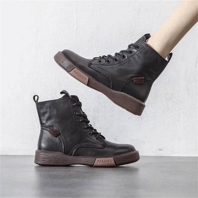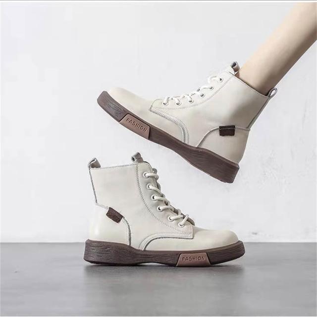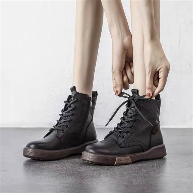 K&J 閃亮服飾 牛皮復古高筒馬丁短靴 高筒短靴 顯瘦短靴 百搭馬丁靴 韓系馬丁靴 時尚馬丁靴 女鞋新款 高級感短靴