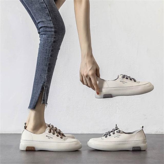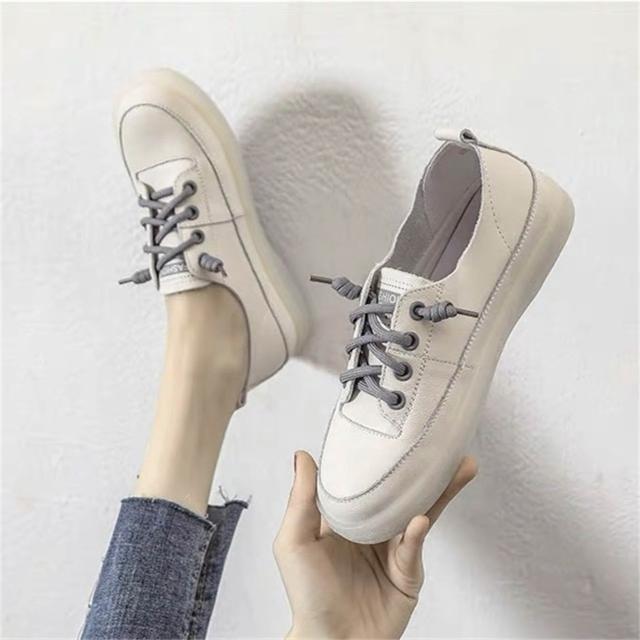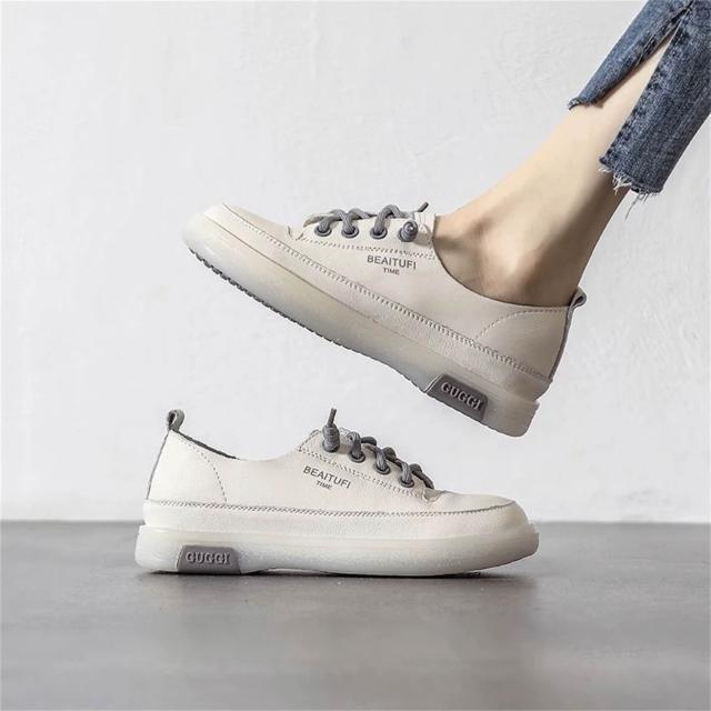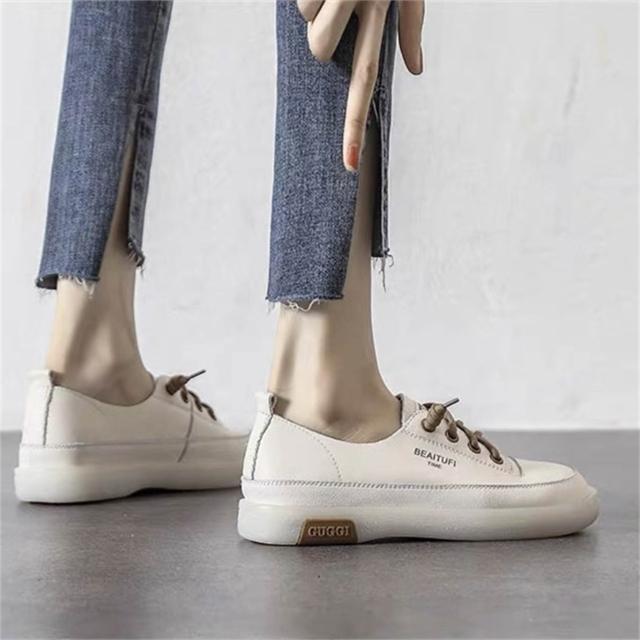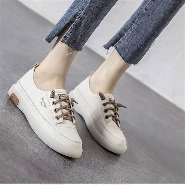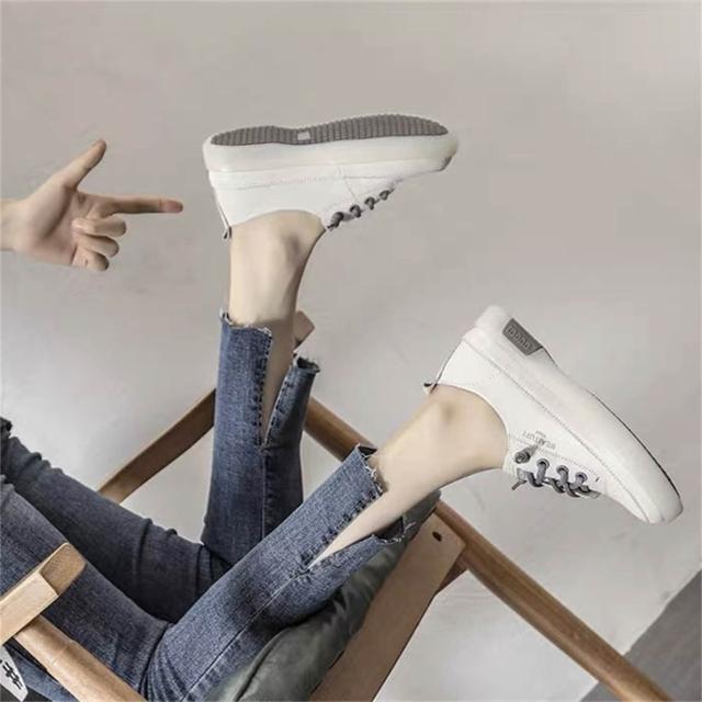 K&J 閃亮服飾 真皮透氣小白鞋|牛筋軟底舒適女鞋 透氣鞋 通勤鞋 韓系休閒鞋 真皮女鞋 經典白鞋 平底鞋 厚底小白鞋
