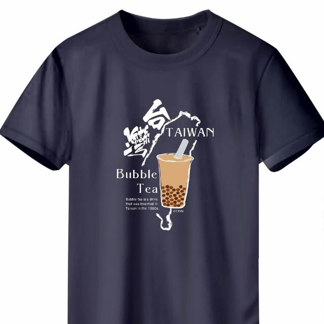 創意服飾台灣珍珠奶茶 Bubble Tea 印花T恤|潮流純棉文字T 台灣設計款|藏青色款