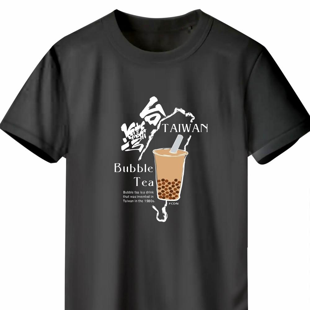 創意服飾台灣珍珠奶茶 Bubble Tea 印花T恤|潮流純棉文字T 台灣設計款|黑衣款