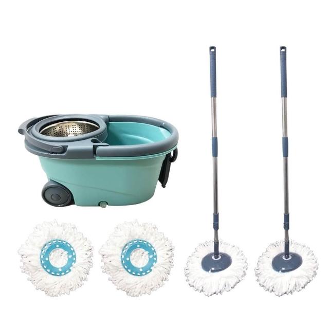 新潮流洗脫拖雙輪獨立拖把桶 下壓自動脫水 旋轉拖把2桿4布超值組