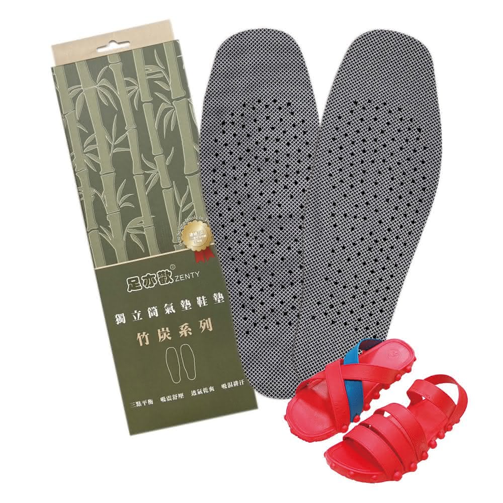 第二代 竹炭 獨立筒氣墊式鞋墊 1雙送韓國拼裝拖鞋1雙吸濕消臭 竹炭鞋墊 抗震耐走