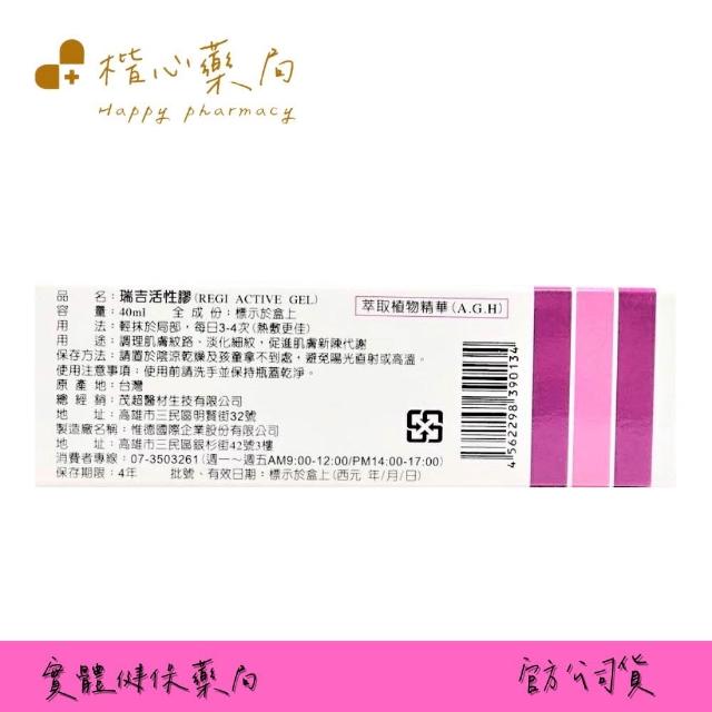 楷心藥局 REGI VITAL 瑞吉活性膠 一入/三入 40g/條 七葉樹 綠茶 維生素B5 泛醇Panthenol