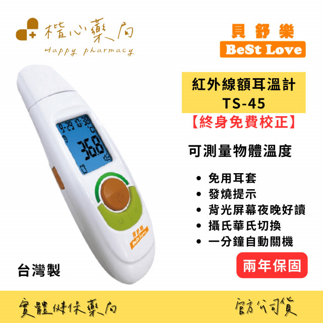貝舒樂BeSt Love 紅外線額耳溫計TS-45(額溫 耳溫 免耳套設計 可測量物體溫度 台灣製造)