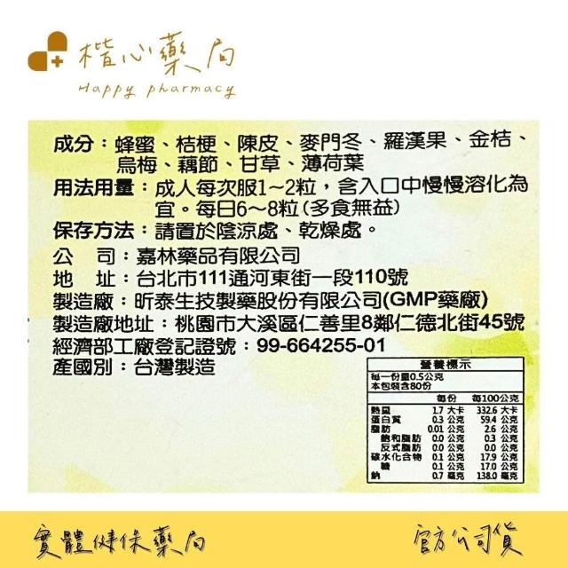 楷心藥局 舒喉 喉糖 盒裝 (80排共1600顆)藥廠製造 漢方熱草本精華(羅漢果、蜂蜜、桔梗、陳皮、甘草、金桔 )
