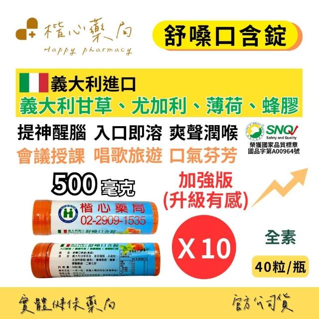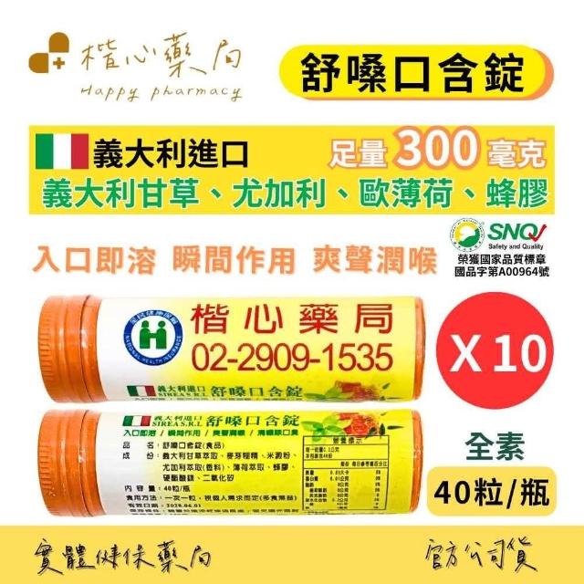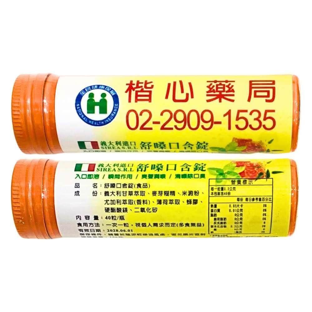 楷心藥局 舒嗓口含錠 使立舒精油錠 草本潤喉錠X10(40錠/罐)(義大利原錠進口 成分同六鵬 潤喉)
