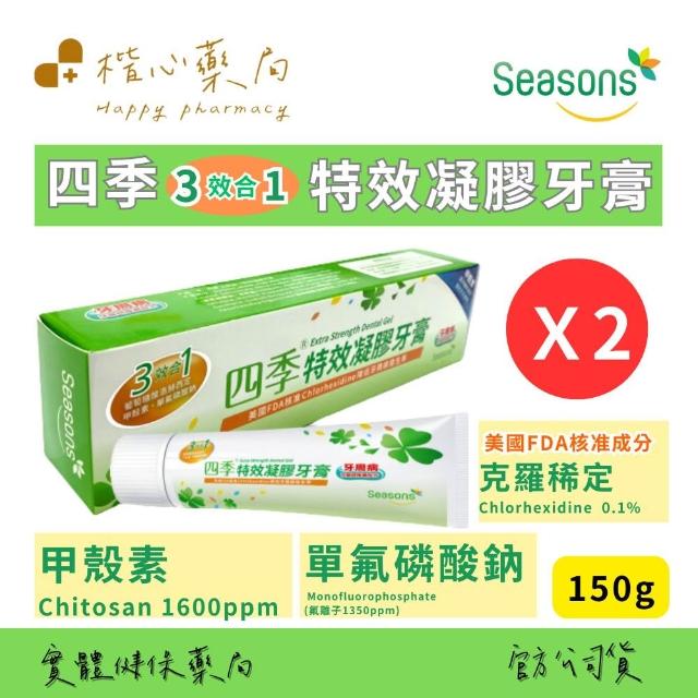 楷心藥局 四季 Seasons 3效合1特效凝膠牙膏 2入組