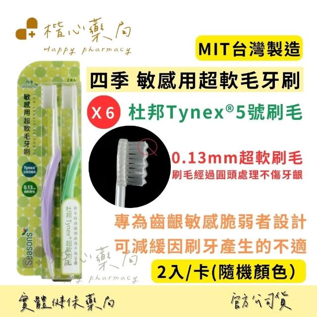 楷心藥局 四季敏感用超軟毛牙刷2入/卡X6(隨機顏色)杜邦Tynex®5號刷毛 敏感 敏感牙齒 牙刷 杜邦