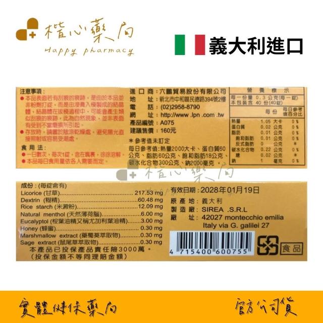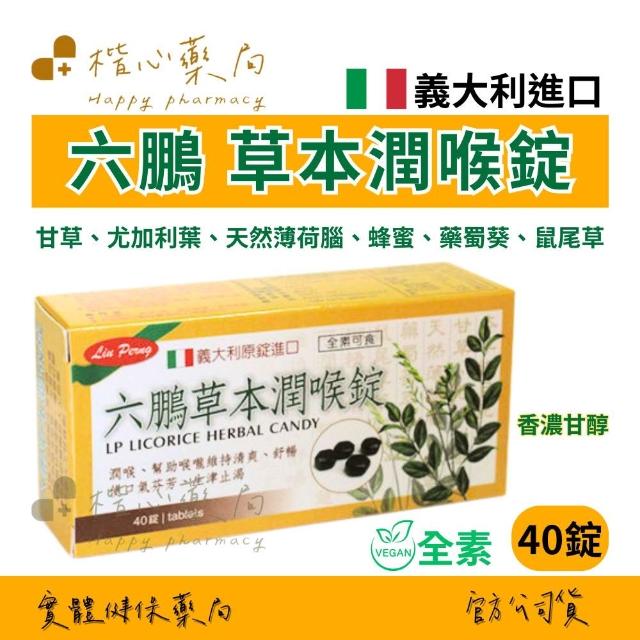 楷心藥局 六鵬 草本潤喉錠 40錠排裝/盒 一盒 全素 (草本潤喉 薄荷 蜂蜜)