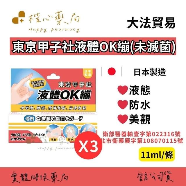 楷心藥局 東京甲子社液體OK繃(未滅菌)11ml/條-三入 防水