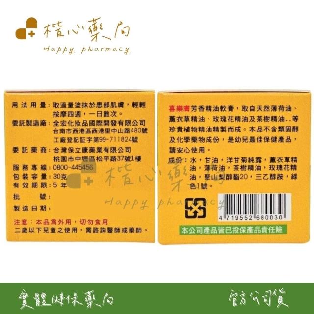 楷心藥局保立康 喜樂膚精油軟膏 30ml-3瓶/6瓶 植物精油配方 洋甘菊 薰衣草精油 薄荷油 茶樹精油