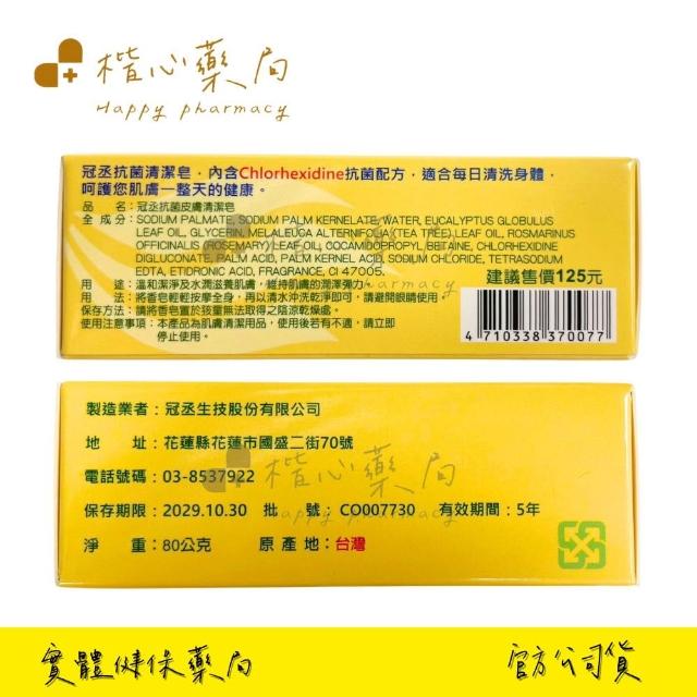 楷心藥局冠丞 抗菌皮膚清潔皂80g/塊 尤加利葉油 溫和潔淨 chlorhexidine
