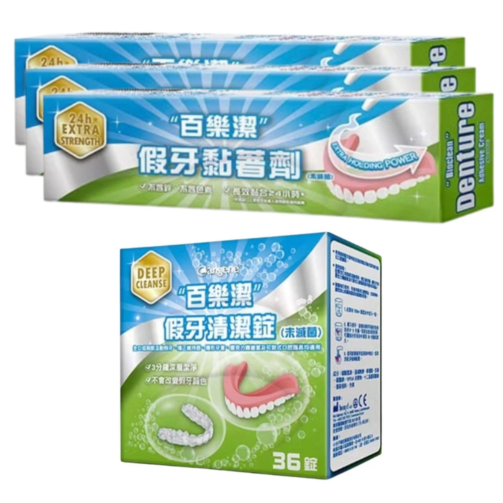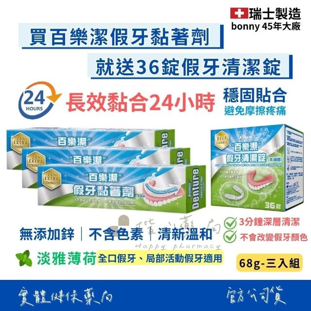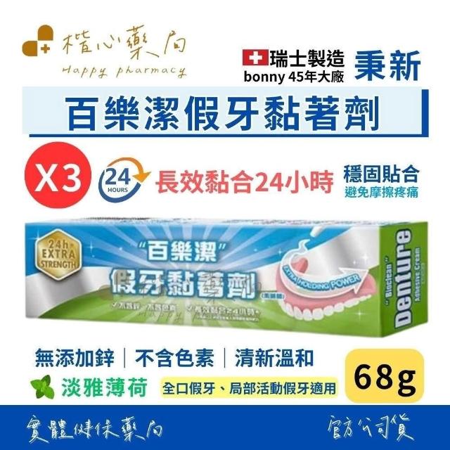 買就送假牙清潔錠 秉新 百樂潔假牙黏著劑68g3入組 瑞士製造 假牙 24小時 長效 黏合
