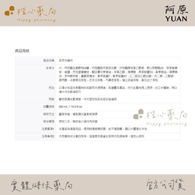 阿原YUAN阿原 草本洗寵物 500mL-狗狗專用| 薰衣草精油 廣藿香精油 香茅精油 寵物沐浴乳 毛小孩