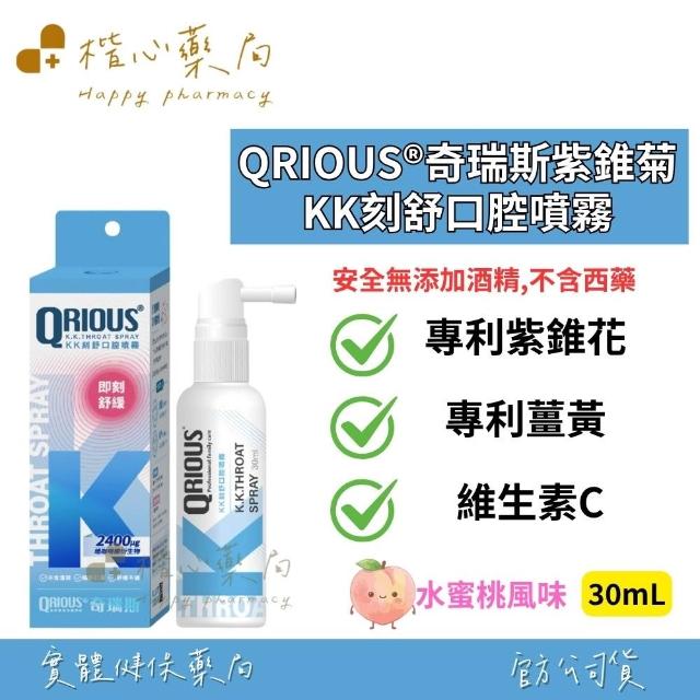 QRIOUS 奇瑞斯 紫錐菊KK刻舒口腔噴霧 30ml-水蜜桃口味 專利紫錐花+薑黃+維生素C 兒童成人適用 口腔