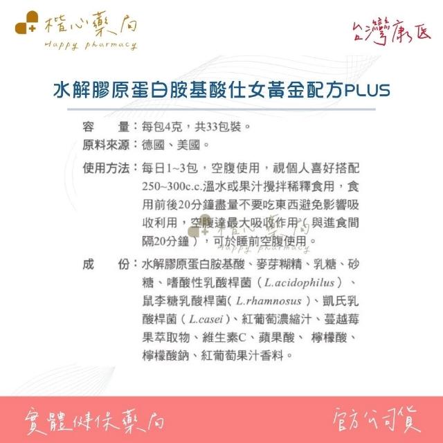 台灣康医 水解膠原蛋白胺基酸仕女黃金配方PLUS 4gX33包 維生素C 100%純膠原蛋白 胺基酸