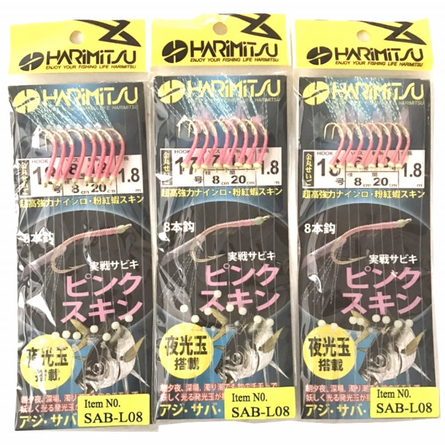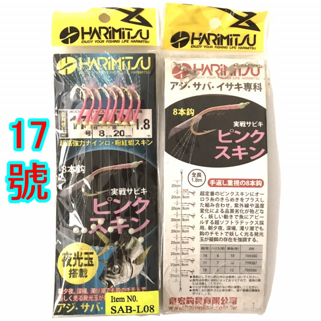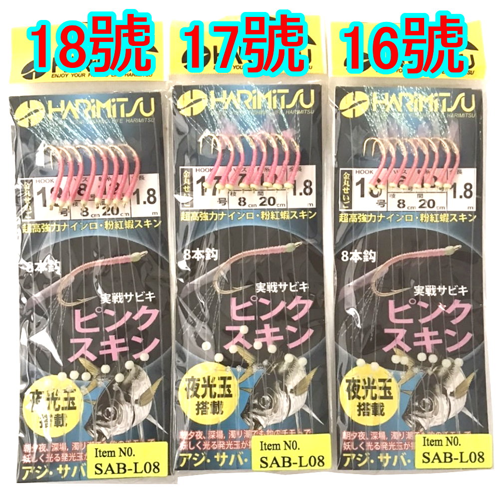 船釣潘多拉 Harimitsu 丸世鉤+ 粉紅蝦 SAB-L08 船釣仕掛 魚皮假餌仕掛 魚皮仕掛 仕掛釣組 仕掛
