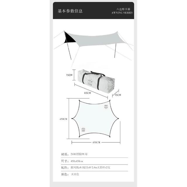 三只小驢黑膠六角天幕 哈比天幕 銀膠天幕 天幕 帳篷 露營 野營 黑膠 銀膠 NH Naturehike