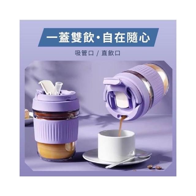 7822 shop雙飲玻璃咖啡杯 耐熱玻璃隨身杯 水壺 玻璃杯 吸管水杯 隨行杯 飲料杯 環保杯 杯子 咖啡杯 保溫