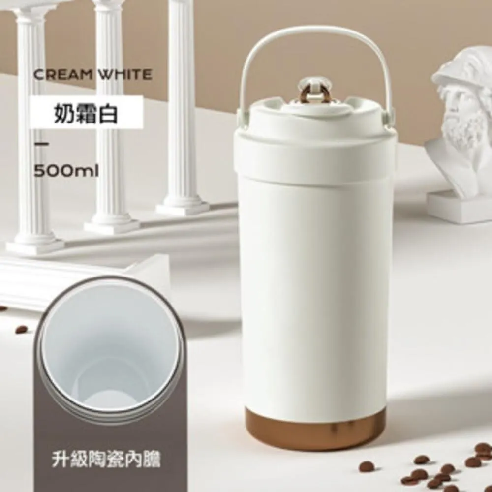 7822 shop500ml 陶瓷咖啡杯 陶瓷保溫瓶 附吸管 咖啡保溫杯 吸管保溫杯 保溫瓶 隨行杯