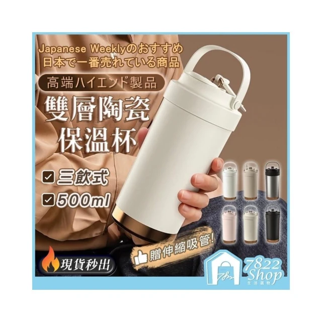 7822 shop500ml 陶瓷咖啡杯 陶瓷保溫瓶 附吸管 咖啡保溫杯 吸管保溫杯 保溫瓶 隨行杯