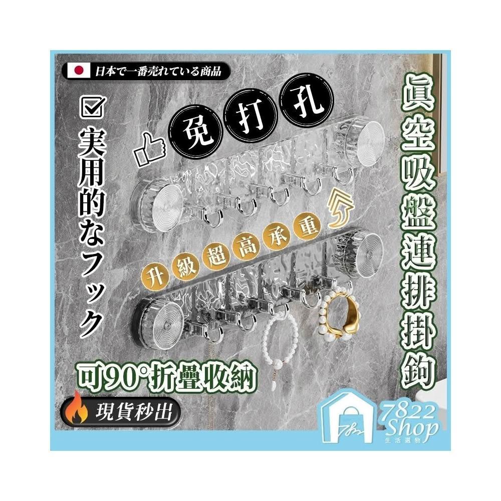 7822 shop輕奢吸盤連排掛鉤 一排式挂钩 衛生間掛鉤 衣帽掛鉤 玄關掛鉤 免釘掛鉤 浴室廚房掛鉤 無痕掛勾