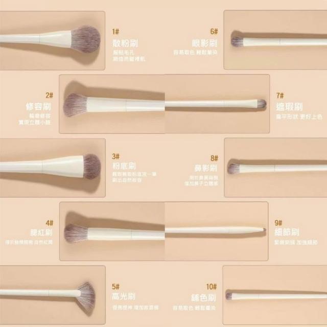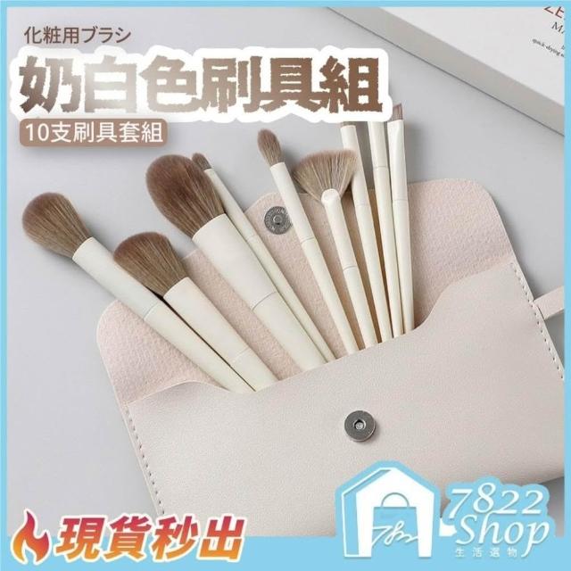 7822 shop法式奶白化妝刷組 10支套組 化妝刷組 粉底刷 刷具組 遮瑕 腮紅 刷具 美妆工具 化妝刷套裝