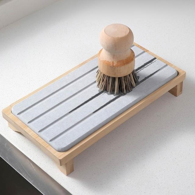 i LIFE 愛生活質感升級-日系竹製矽藻土(硅藻土)吸水置物架 除濕墊 皂墊 洗漱墊 硅藻土杯墊 浴室置物盤