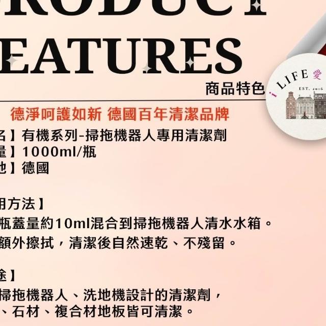 Poliboy 德淨德國原裝 寵物友善 有機系列-掃拖機器人地板清潔劑1000ml 去汙 快乾 無毒 環保