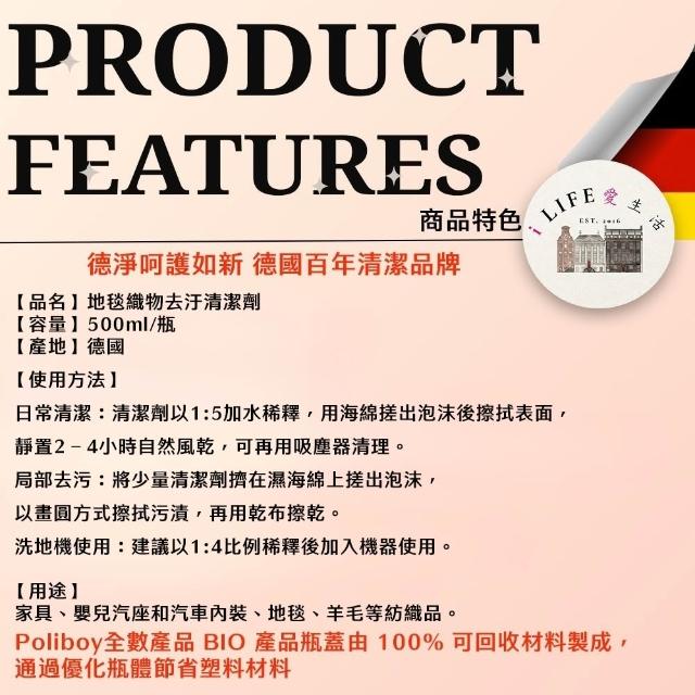 Poliboy 德淨德國原裝 地毯織物去汙清潔劑500ml 去污 免水洗 抗靜電 嬰兒車 床墊