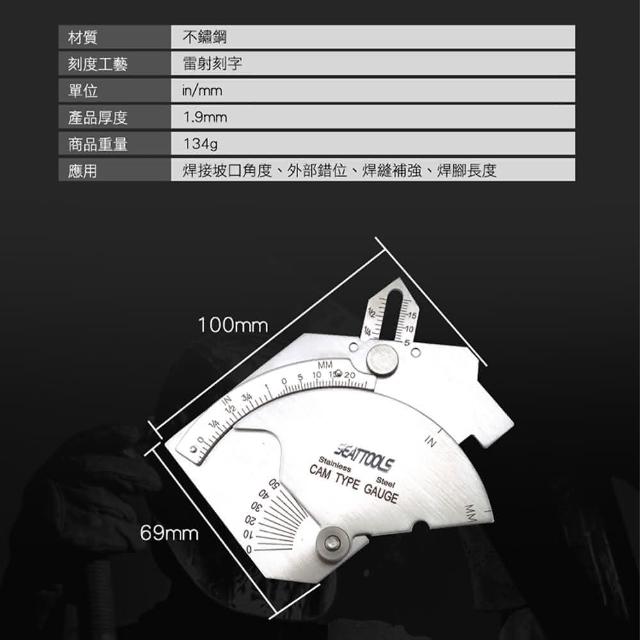 焊接檢測尺 不鏽鋼焊接測量尺 高低規 焊縫尺寸 坡口角度 焊縫高度 角焊縫厚度 間隙規 焊道檢測 085-MG8