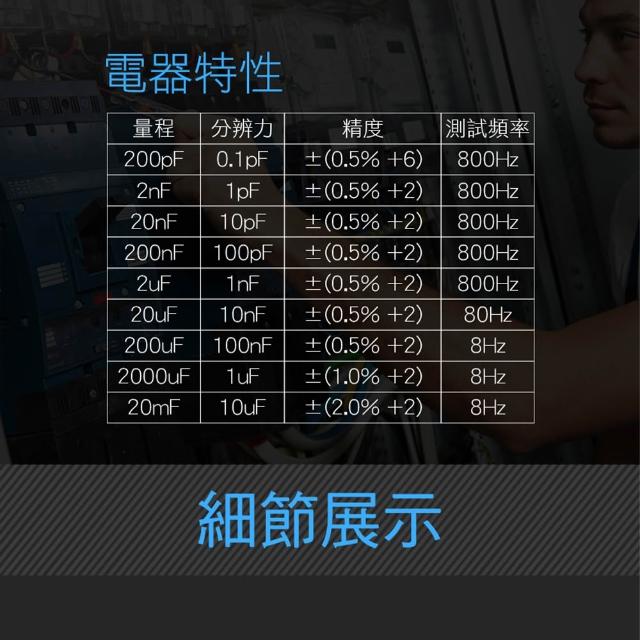 高精準電容表 電容式電錶 電容電表 數位電容表 數轉換器 雙積分模 雙重絕緣保護 過載指示 085-DCM9601