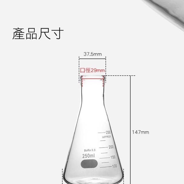 錐形燒瓶 耐熱玻璃三角燒杯 實驗燒杯 錐形量杯 過濾瓶 樣本瓶 錐形燒杯 三角燒瓶 250ml 085-GCD250