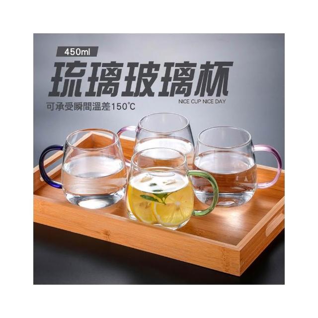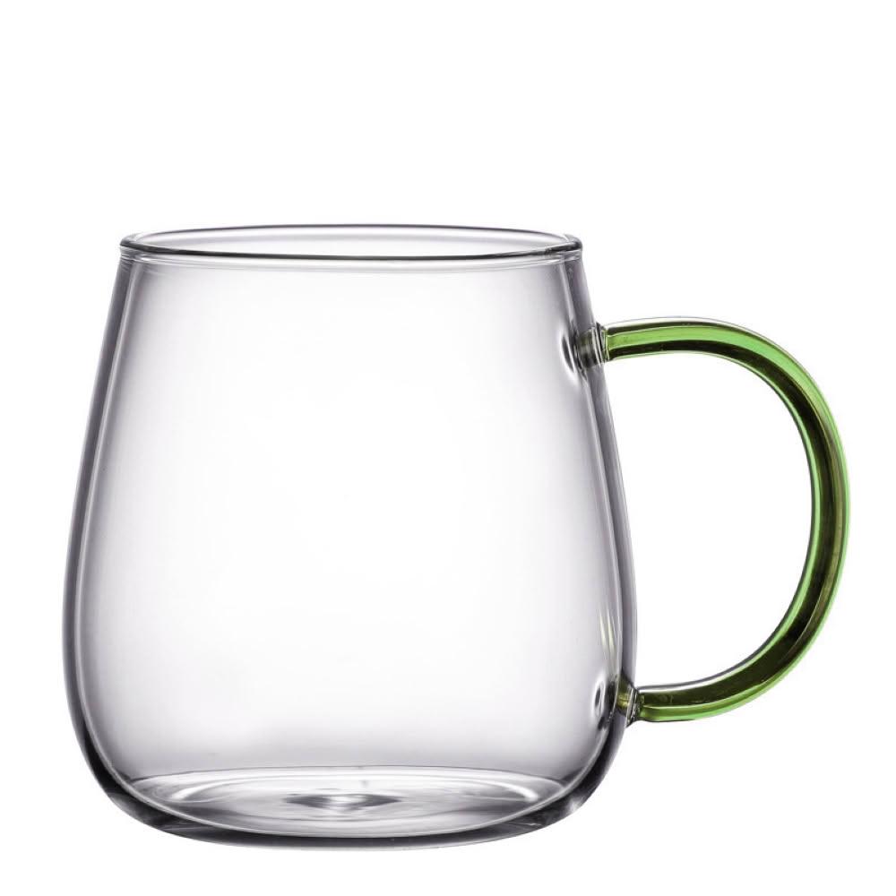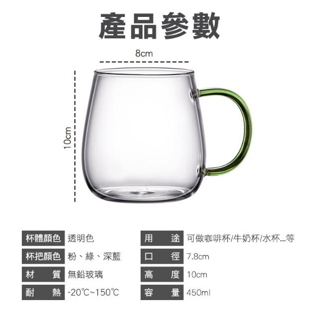 琉璃玻璃杯 透明水杯 耐熱玻璃杯 帶把玻璃杯 咖啡杯 防燙杯 啤酒果汁杯 牛奶杯 綠色 450ml 085-PG450G