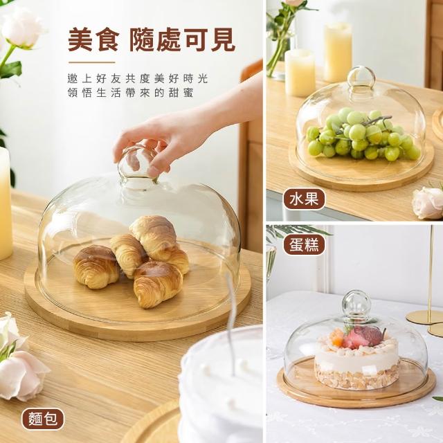 玻璃透明罩 木質托盤 木質餐盤 罩盅餐盤 圓形菜蓋 玻璃盅 蛋糕盤 甜點罩 甜點架 玻璃罩 透明蓋 085-GS26W