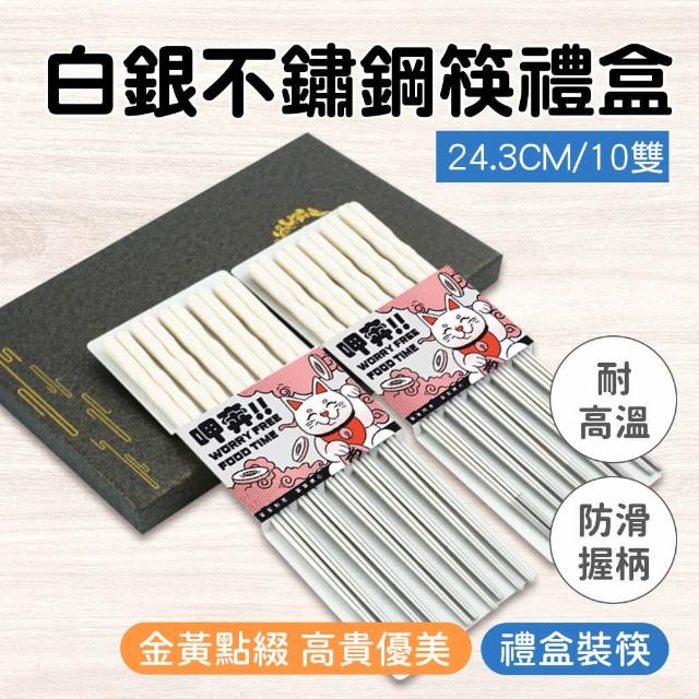 白鐵筷子 尖頭筷 環保筷子 筷子禮盒 餐具 不鏽鋼筷 料理筷子 防滑筷 日式筷子 十雙入 085-CPSW245-10
