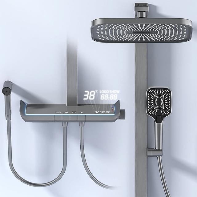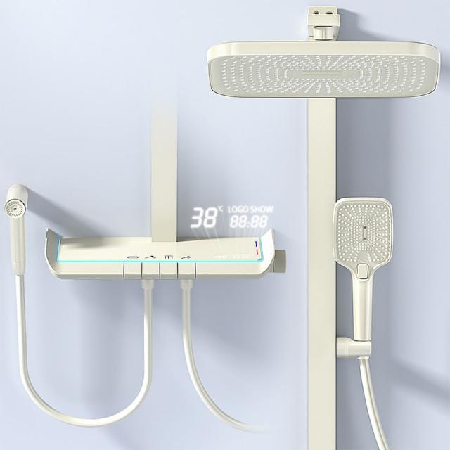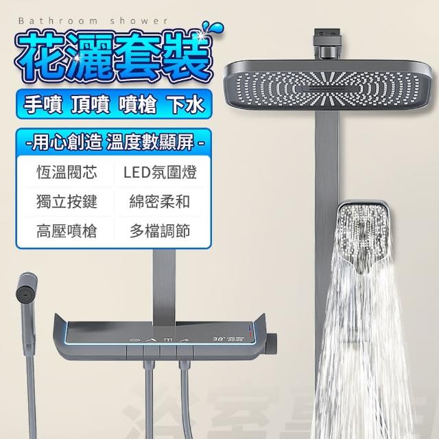 淋浴花灑套裝 恒溫冷熱 共用數顯氛圍燈 置物面板 家用增壓花灑(花灑 蓮蓬頭)