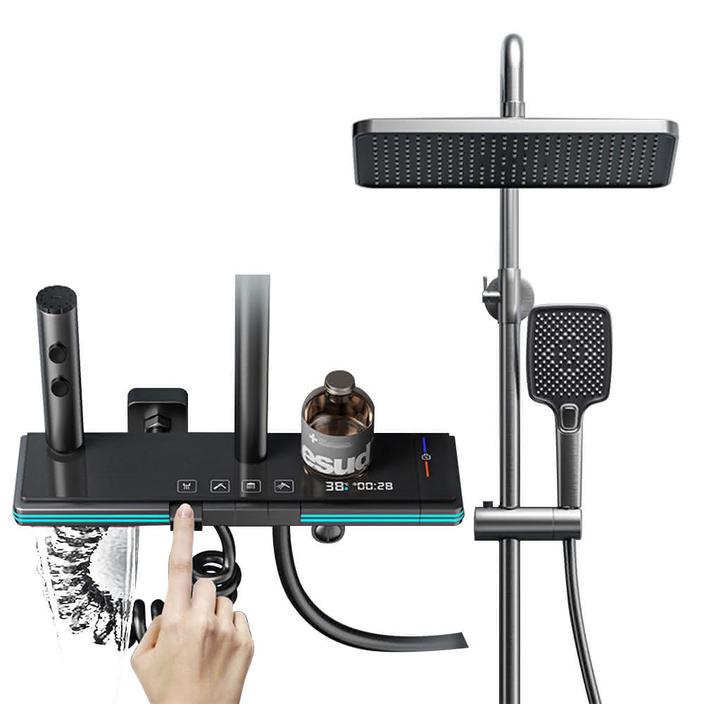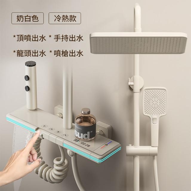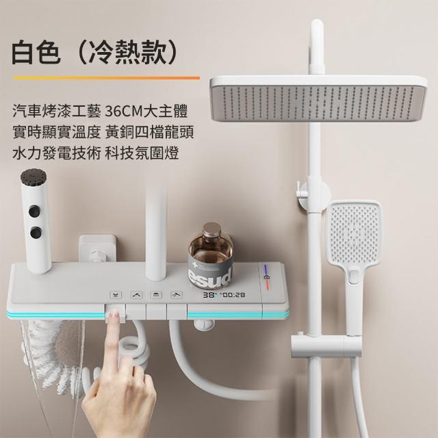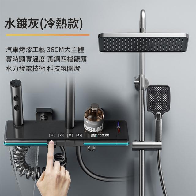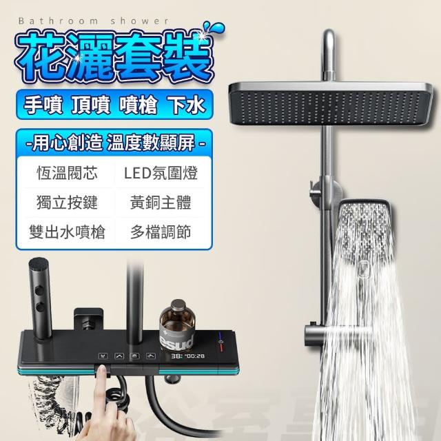 淋浴花灑套裝 全銅冷熱 共用鋼琴拉絲按鍵 數顯氛圍燈 淋浴增壓花灑(花灑 蓮蓬頭)