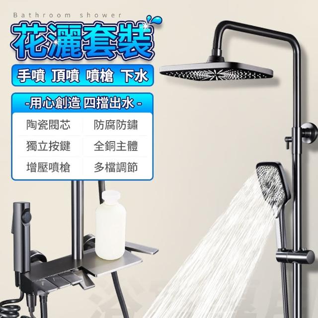 恒溫淋浴花灑套裝(鋼琴按鍵 衛浴淋浴器 家用增壓淋雨噴頭)