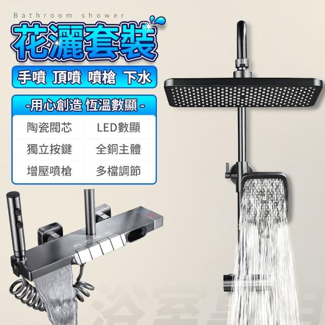 水鍍淋浴花灑 蓮蓬頭(全銅增壓沐浴 家用衛生間 智能恒溫數顯 淋雨套裝)
