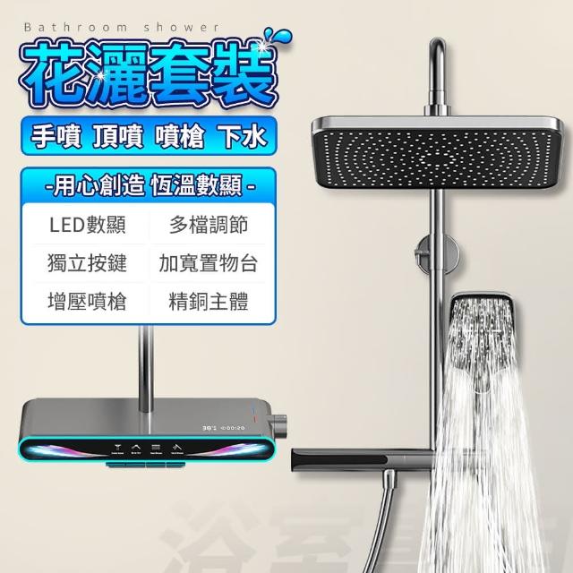 全銅恒溫淋浴花灑(數顯家用蓮蓬頭 衛浴室 衛生間 槍灰淋雨增壓沐浴)
