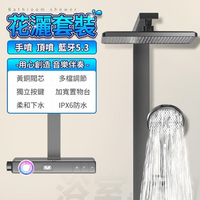 音樂花灑套裝 蓮蓬頭(家用淋浴器 方桿高端 恒溫智能數顯 氛圍燈家用沐浴)