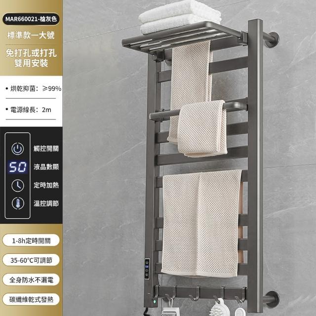 碳纖維電熱毛巾架(免打孔 智能浴巾架 浴室恒溫烘乾架 毛巾桿 打孔加熱毛巾置物架子)