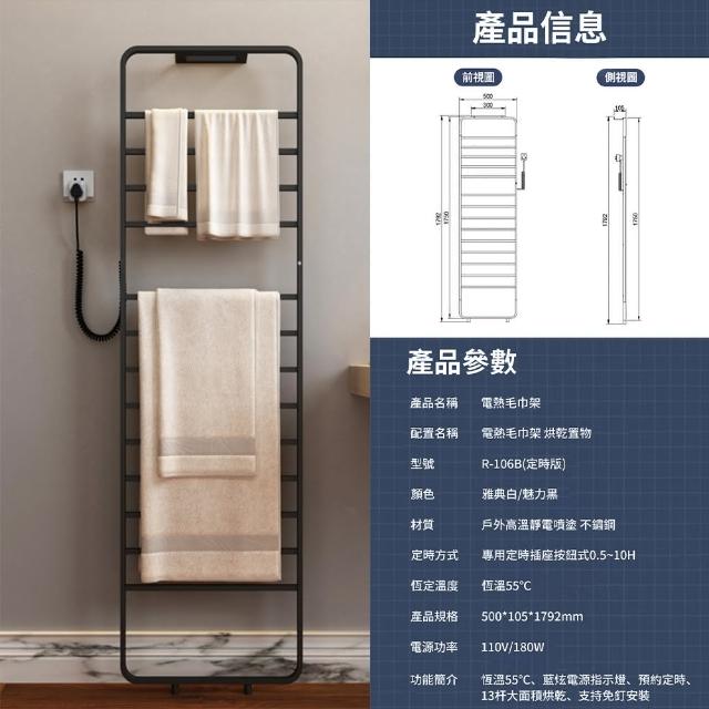 落地式電熱毛巾架(110V浴巾架 家用衛生間 碳纖維不銹鋼 電加熱烘乾架 多層浴巾桿)