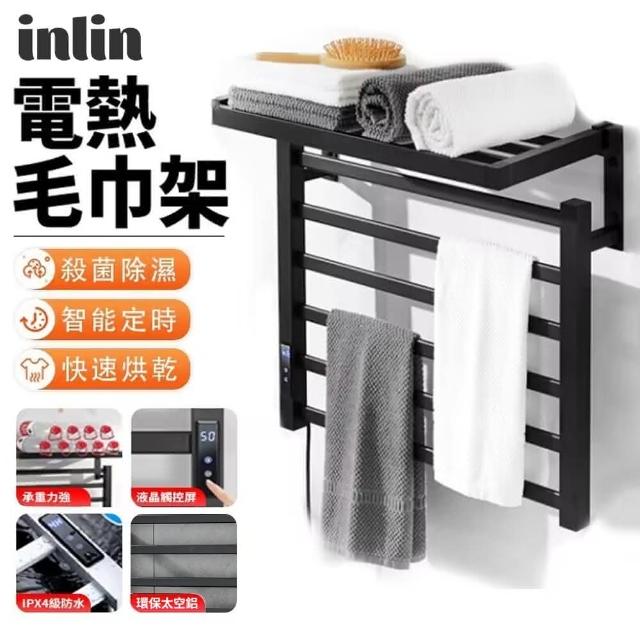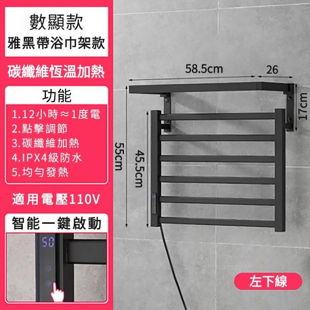 110V 電熱毛巾架(免打孔 恒溫智慧浴巾烘幹架 炭纖維置物架子 浴室毛巾架)