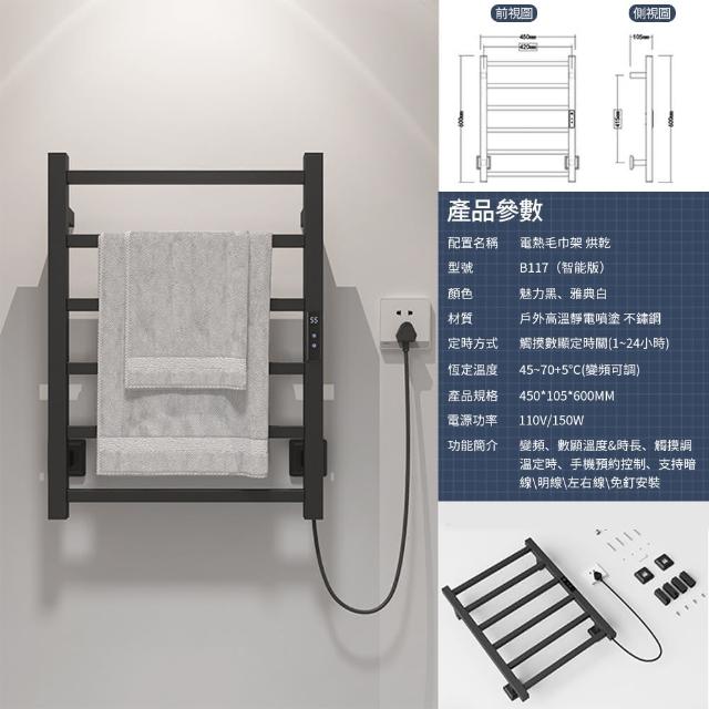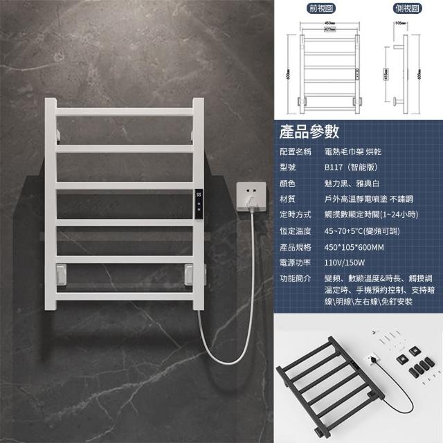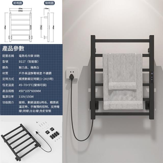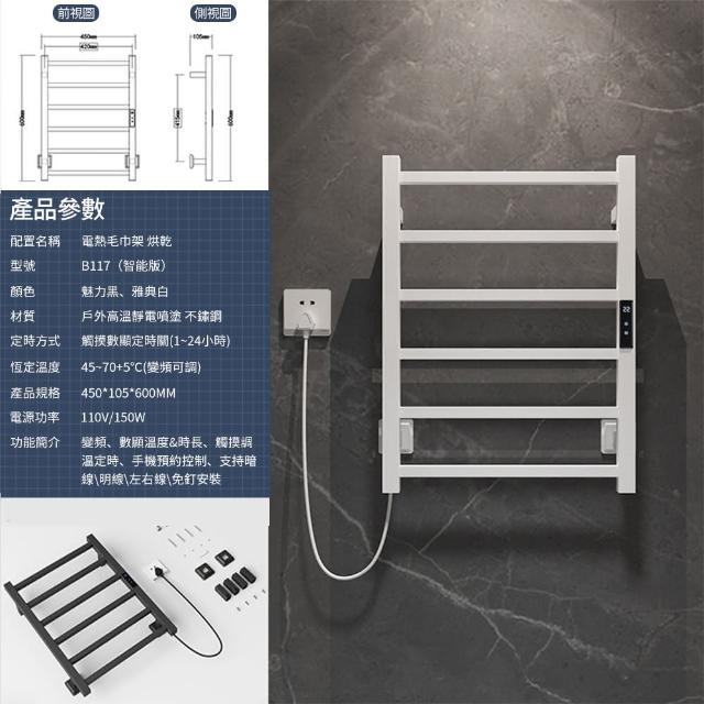 110V 電熱毛巾架(極簡碳纖維不銹鋼置物架 打孔/免打孔加熱浴室毛巾桿 浴巾架 毛巾架 烘乾機)