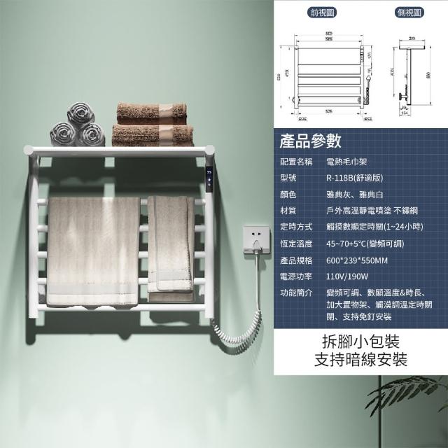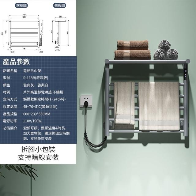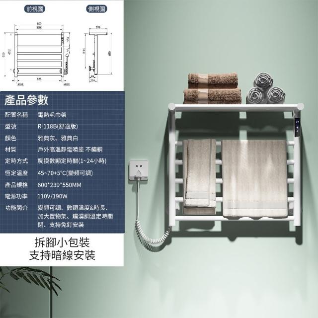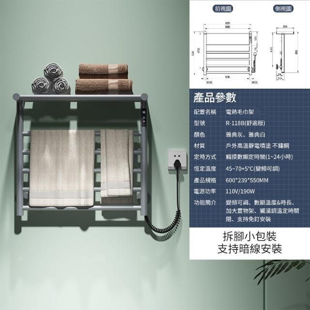 電熱毛巾架(110V智能烘乾架 置物架 浴室烘乾 加熱毛巾架 不銹鋼碳纖維自動加熱毛巾桿 免打孔毛巾架)