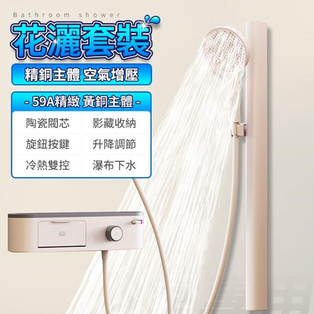 淋浴花灑套裝 衛生間淋雨柱 洗澡淋浴器(純銅內膽 奶油風淋浴花灑 多功能液態矽膠)