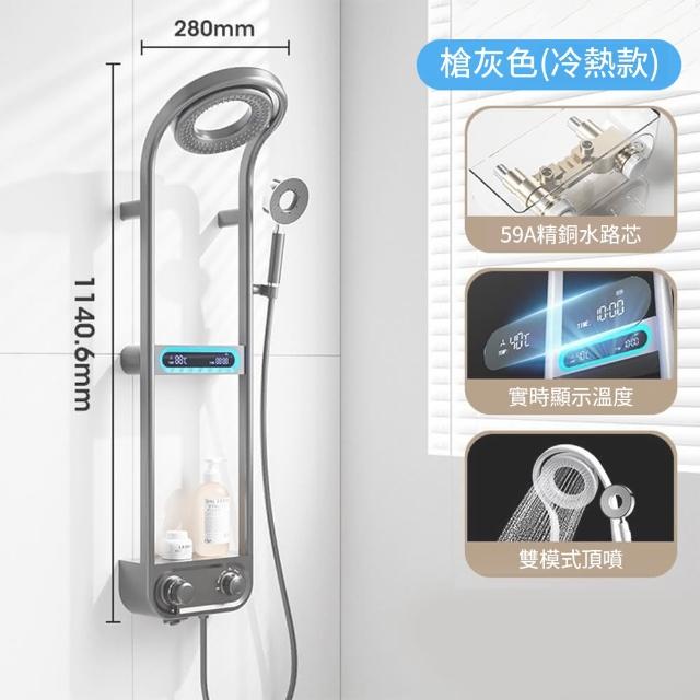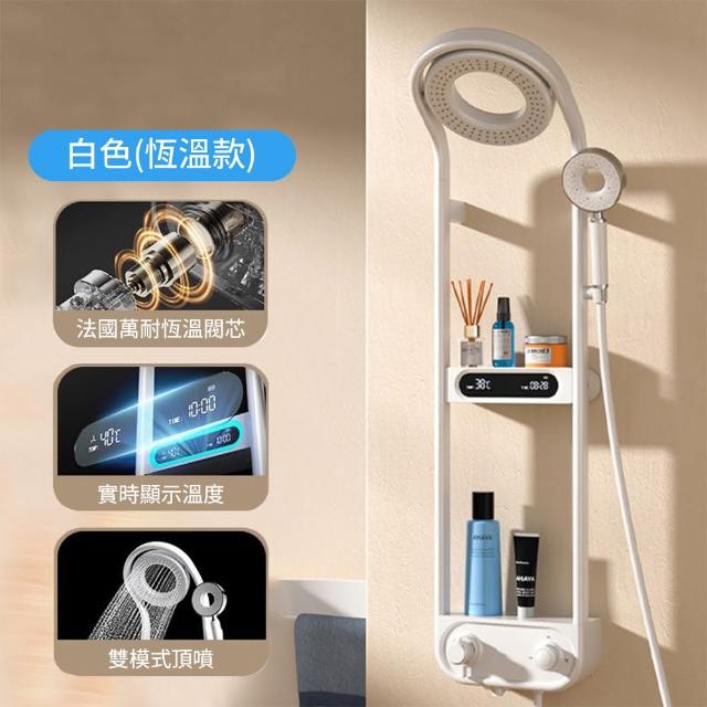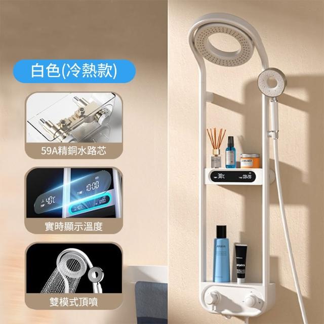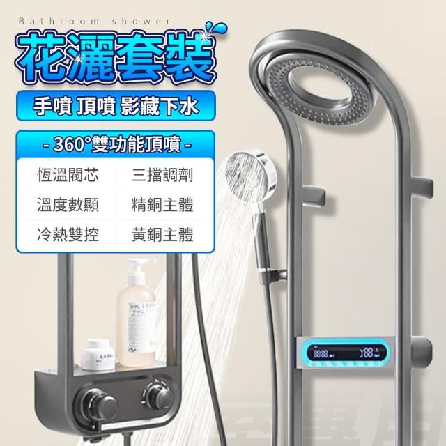 花灑蓮蓬頭 水龍頭(壁掛式數顯冷熱花灑淋浴套裝 黃銅壁櫥式 網紅奶油風花灑套裝)